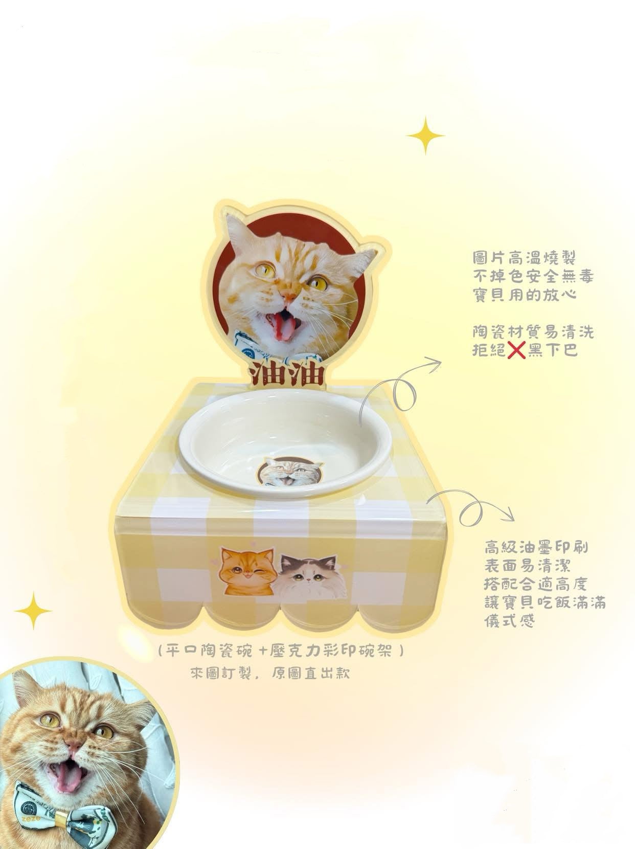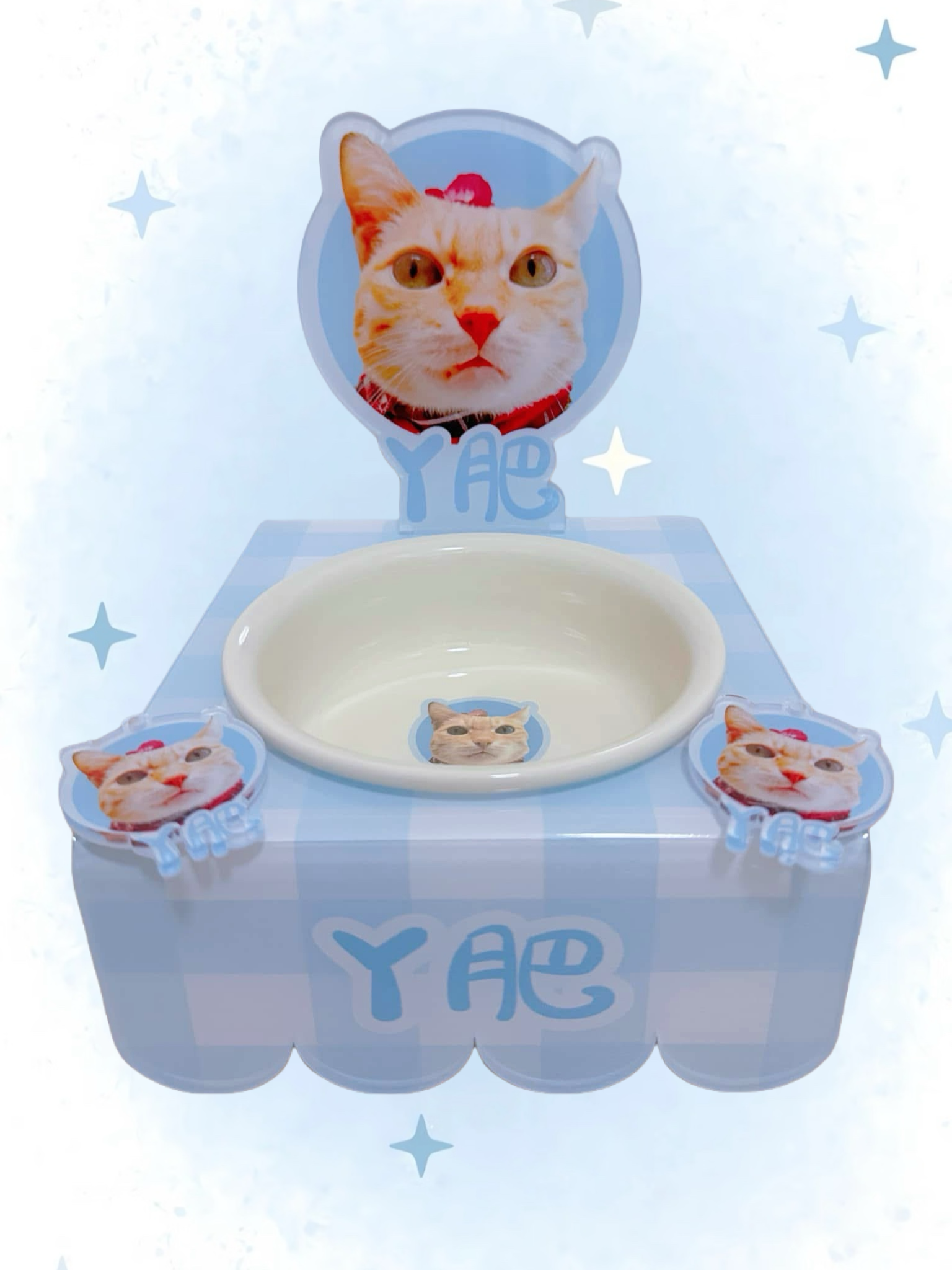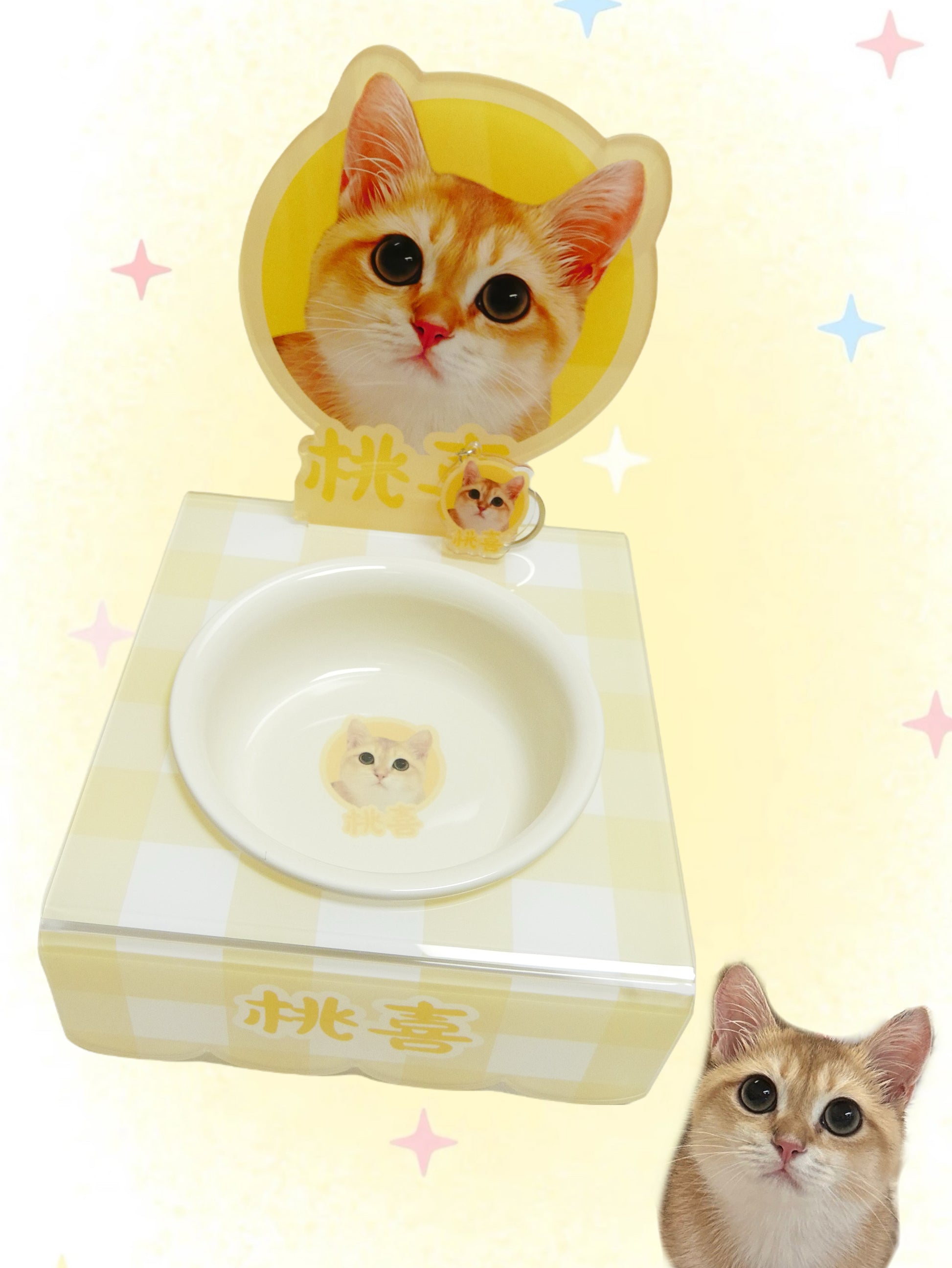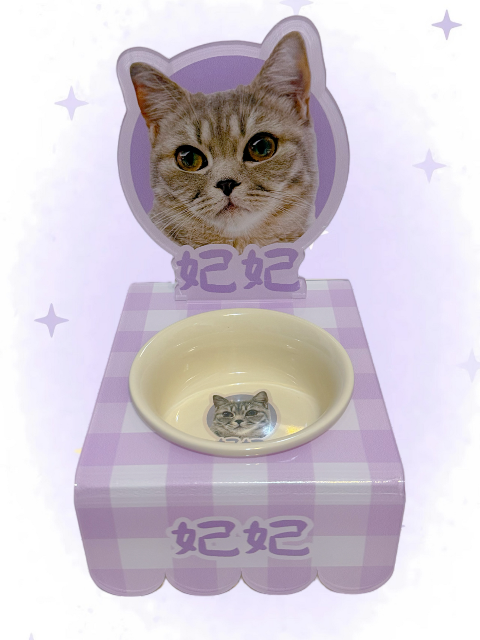 - 碗架:只換插牌圖案,碗架使用現有格子圖(可換色、碗架正面默認為寶貝名字);碗架高度為8公分或10公分,可自選。